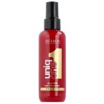 اسپری موی 10 کاره یونیک وان رولون قرمز محصول کشور اسپانیا، یک اسپری موی درمانی و همه کاره است. این محصول موها را فوق العاده نرم و ابریشمی کرده و گره هــای آن را باز می کند. همچنین کمک می کند تا موها راحت تر شـانه شوند. اسپری موی 10 کاره یونیک وان Revlon به موها حجم و حالت داده و حالت آن را تا مدت طولانی حفظ می کند. این اسپری همچنین دارای فیلـــتر های حفاظتی UVB و UVAبوده و از رنگ موها در برابر آفتاب محافظت می نماید. اسپری موی رولون قرمز دارای رایحه دلپذیر نعنای هندی، چوب سرو و تمشک بوده و موها را خوشبو می سازد. این محصول موها را چرب نکرده و نیاز به شستشو و آبکشی ندارد. این اسپری مو برای انواع موها مناسب بوده و بر روی موهای خشک و نمدار قابل استفاده است.