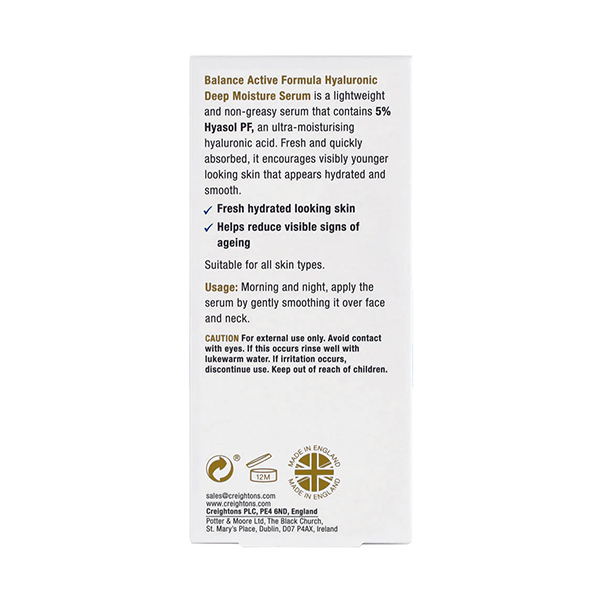با افزایش سن  پوست شما نمی تواند هیالورونیک اسید  کامل را تولید کند که این امر موجب پیر شدن پوست می شود. از اینرو سرم آبرسان Balance Hyaluronic میتواند بهترین گزینه برای شادابی پوست شما شود. از سوی دیگر، گاهی ممکن است که پوست شما در معرض آفتاب یا اشعه های uv قرارگیرد ثبات، استحکام، انعطاف پذیری خود را از دست می دهد که این امر موجب ایجاد چروک هایی عمیق در پیشانی، کناره های لب و گوشه های چشم می شود. کمبود آب موجب کدر شدن، از بین رفتن درخشندگی و پیری زود رس پوست می شود. از اینرو برای داشتن پوستی شاداب، پیشنهاد استفاده از محصولات دارای هیالورونیک اسید است.